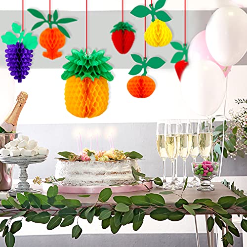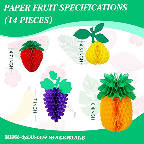 14 Pieces Fruit Party Decorations Honeycomb Fruit Tissue Paper Decoration Tissue Paper Pineapple Table Centerpieces Hanging Honeycomb Strawberry Paper Decor for Birthday Wedding Party Home Decoration