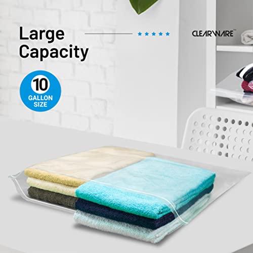 15 Count - Large Storage Bags With Zipper Top, 10 Gallon Size 24" x 24", Extra Large Plastic, For Clothes, Travel, Moving, BPA-Free, Heavy Duty 3-Mil Thick