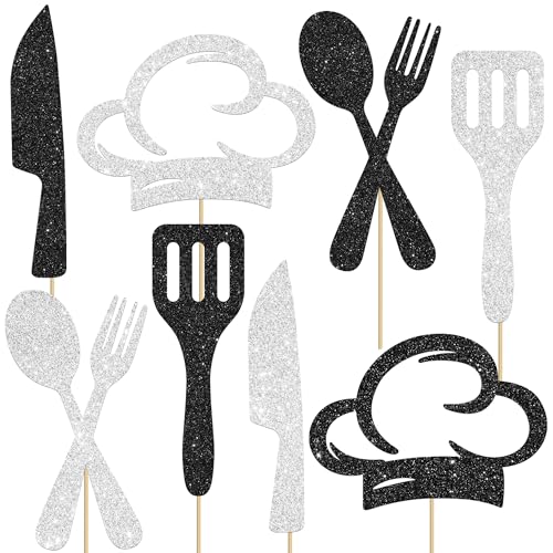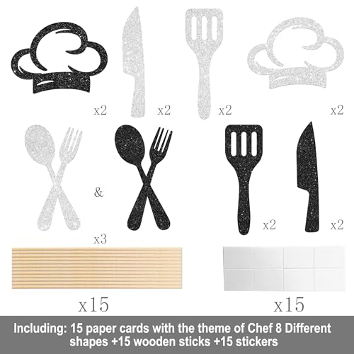 15Pcs Chef Centerpiece Sticks Cooker Chef Birthday Party Centerpieces for Table Cook Theme Party Decorations for Cooking Baking BBQ Kitchen Theme Party Baby Shower Supplies