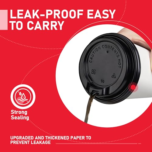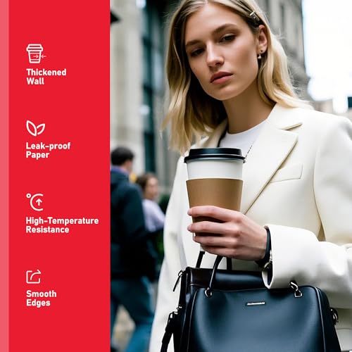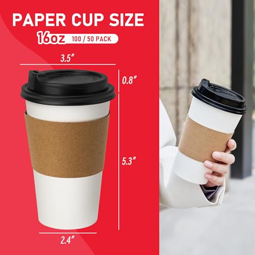 16 oz 100 Pack Coffee Cups with Lids and Sleeves, Hot Paper Coffee Cups with Lids, Disposable To Go Cups with Lid for Coffee, Tea, Hot Chocolate, Ideal for Cafes, Offices and Travel