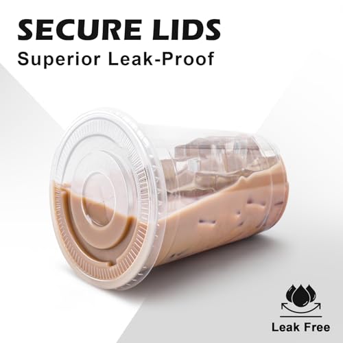 16 oz 100 Pack Plastic Cups with Lids and Straws, Sturdy Food Safe Iced Clear Coffee Cups Disposable Smoothie Cups for Cold Drinks