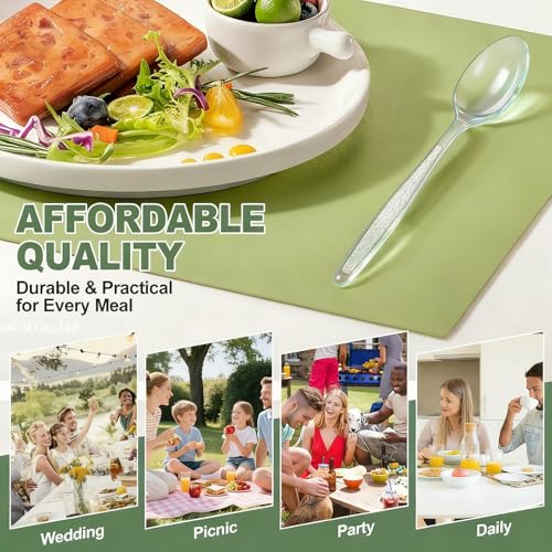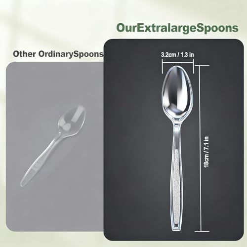 180 Count Plastic Spoons Heavy Duty, Premium Clear Disposable Spoons Heat Resistant & BPA Free, 7.1" Plastic Silverware for for Parties, Event and Daily Use
