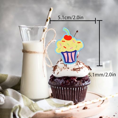 18pcs Glitter Cone Dessert Cupcake Topper Cooking Chef Theme Decor Supplies Baby Shower Boy Girl Happy Birthday Summer Party Decorations