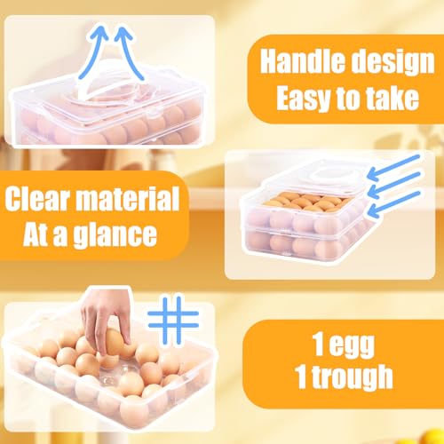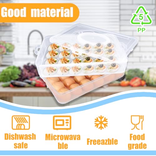 2-Layer Deviled Egg Carrier with Lid,Deviled Egg Trays with Handle,Stack Portable Stackable Trays,Clear Devil Egg Cotainer 48 eggs Holders, for Thanksgiving Day, Easter, Holiday,Parties and Kitchen
