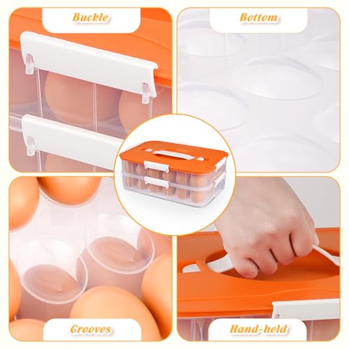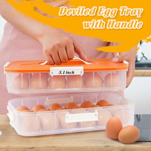 2-Layer Deviled Egg Container With Lid, 36 Slots Egg Tray Carrier With Handle and Injector Piping Tool, Portable Storage Platter for Party Picnic Travel (Orange)