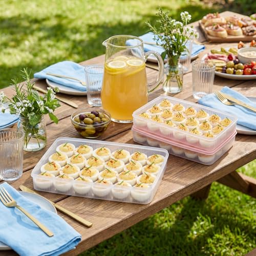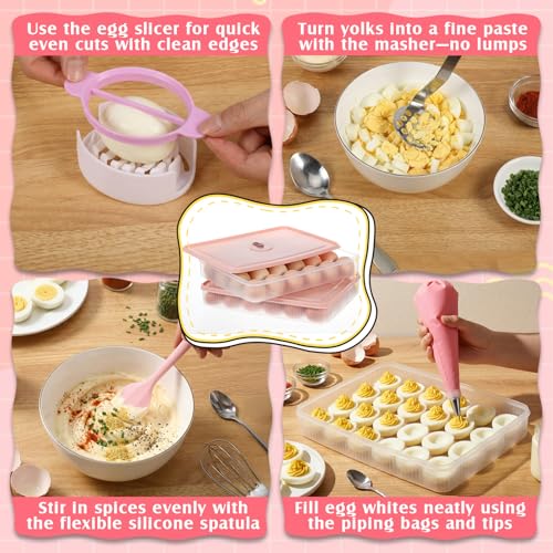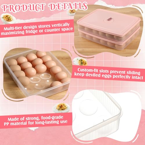 2 Pack Deviled Egg Container with Lid and Piping Bags and Tips Set Portable Plastic Deviled Egg Tray Carrier Organizer Reusable Cake Decorating Kit for Home Easter Party Kitchen Fridge