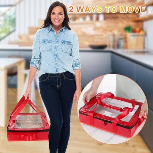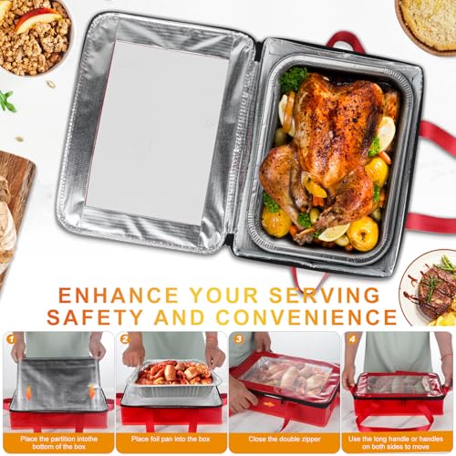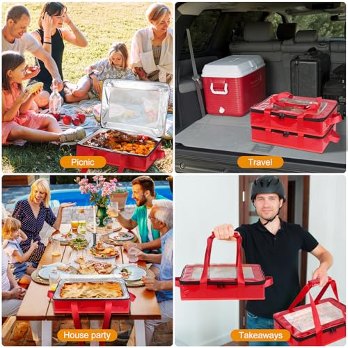 2 Pack Foil Pan Carrier with Clear Lid, PU Leather Aluminum Pan Holders with Long Handle,Serving Tray for Food,Insulated Casserole Carrier for Travel,Picnic,Potluck,Parties,Fits 9"x13" Baking Dish
