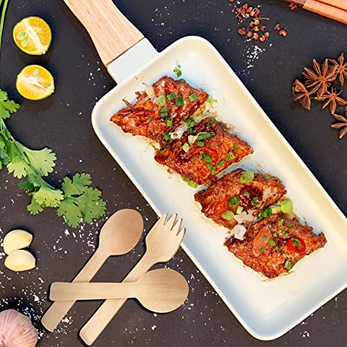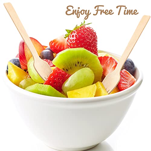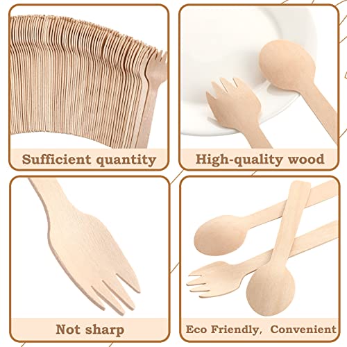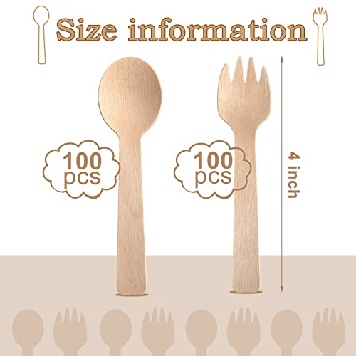 200 Count 4 Inch Mini Wooden Disposable Spoons and Forks Disposable Wooden Cutlery Set Birchwood Material Utensils Spoons Forks for Tableware Parties Weddings Camping Ice Cream Supplies