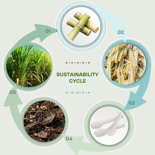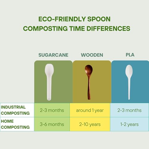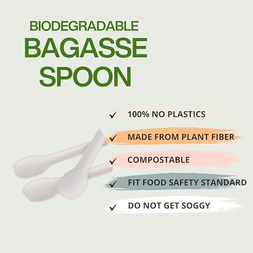200 Count Compostable Spoons, 4.3 Inch Biodegradable Plant Fiber Disposable Cutlery, Eco Friendly, Home Compostable, Bulk Pack for Parties, Catering, Coffee, Desserts & Everyday Use