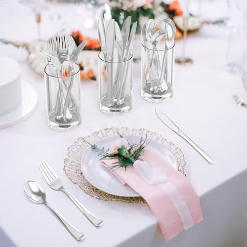 200 Count Heavy Duty Silver Plastic Silverware, 100 Forks, 50 Spoons, 50 Knives, BPA-Free, Heat Resistant, Disposable Plastic Utensils Set Cutlery Set, Plasticware Bulk