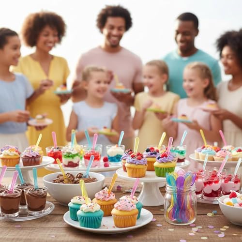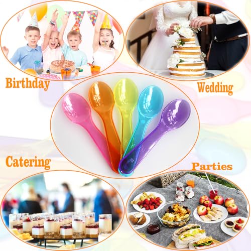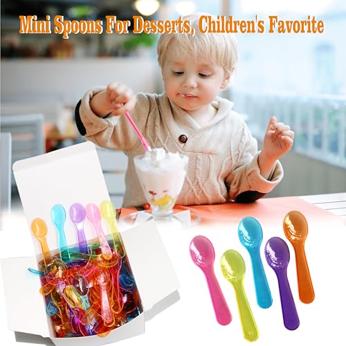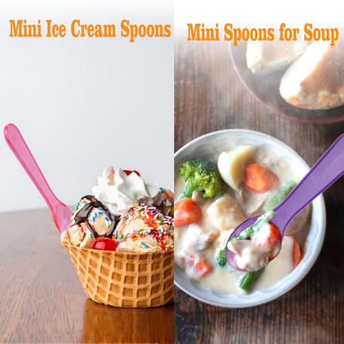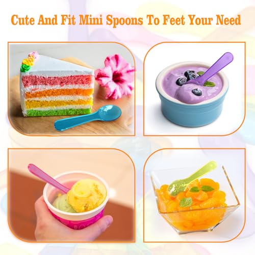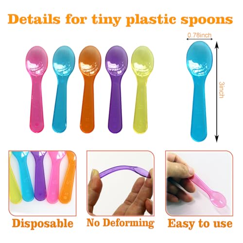 200 PCS Mini Ice Cream Spoons - 3 Inch Tiny Plastic Disposable Tasting Spoons for Dessert, Yogurt, Baby Food & Sampling - Multicolor Small Spoon Bulk Pack for Parties, Events & Catering
