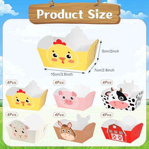 24 Pack Farm Animals Party Supplies Farm Disposable Paper Food Trays Animal Theme Birthday Parties Decorations Snack Bowl Serving Tray for Baby Shower Tableware Carnival Decor Favor