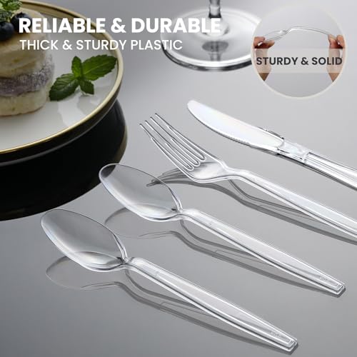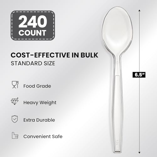 240 Count Extra Heavy Duty Clear Plastic Spoons, Solid and Durable Premium Disposable Spoons - BPA-Free & Heat Resistant Plastic Cutlery Utensils for Parties, Events and Everyday Use