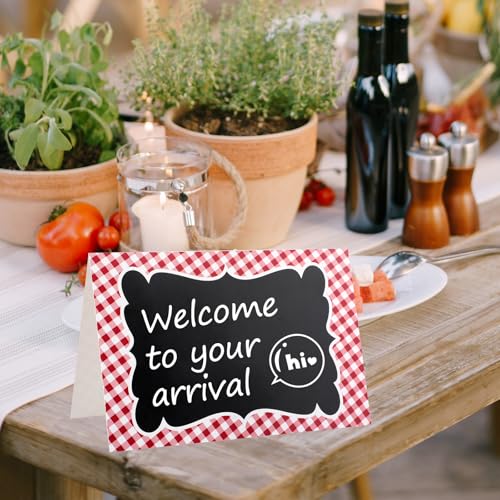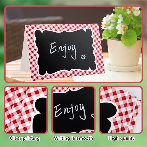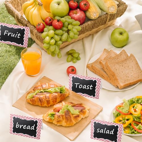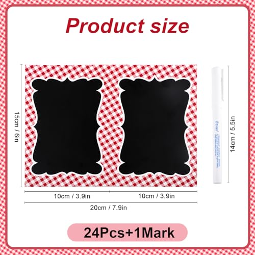 24Pcs Picnic Party Decorations 4 x 6 Inch Picnic Party Chalkboard, Double Sided Red Mini Chalkboards Signs for Food Message BBQ Baby Shower Wedding Event Decorations