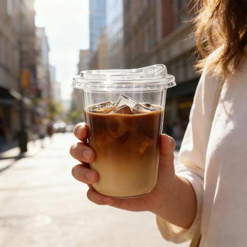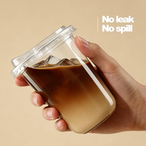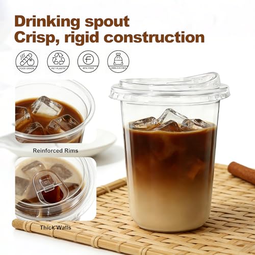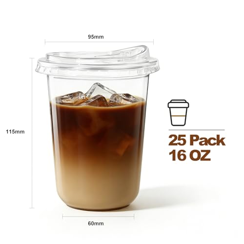 25 Pack-16 oz Clear Plastic Cups with Lids Food Grade Disposable Iced Coffee Cups for Smoothies, Milkshake, Parties