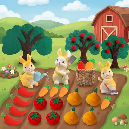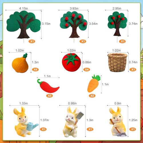 25Pcs Locally Grown Vegetable Cake Topper Set Mini Carrots Tomato Onion Chili with Bunny Decorations for Farmers Market Theme Party Supplies