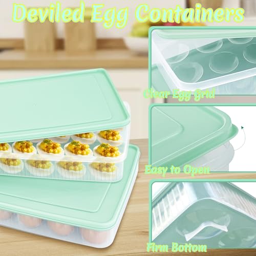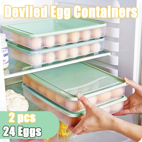 2PCS Deviled Egg Containers with Lid,Portable Storage Carrier Egg Holder,Stackable Plastic Egg Tray Carrier for Kitchen,Fridge,Keep Fresh,Easter(48 Eggs)