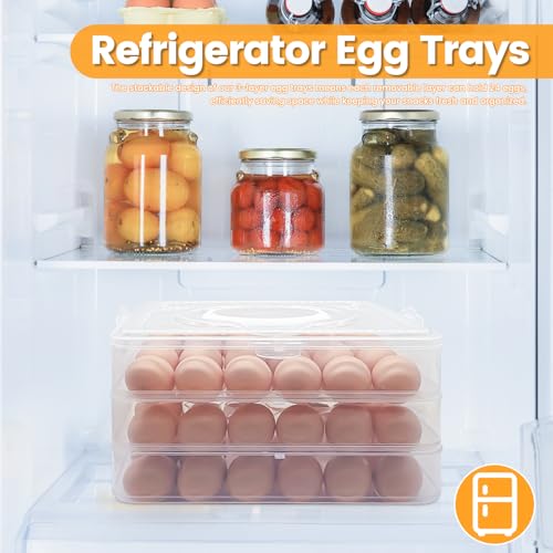 3 Layer Deviled Egg Containers with Lid,Portable Deviled Egg with Handle,Egg Carrier Holder Tray with 72 Holes for Thanksgiving Day,Party Favor Home Kitchen Refrigerator Supplies