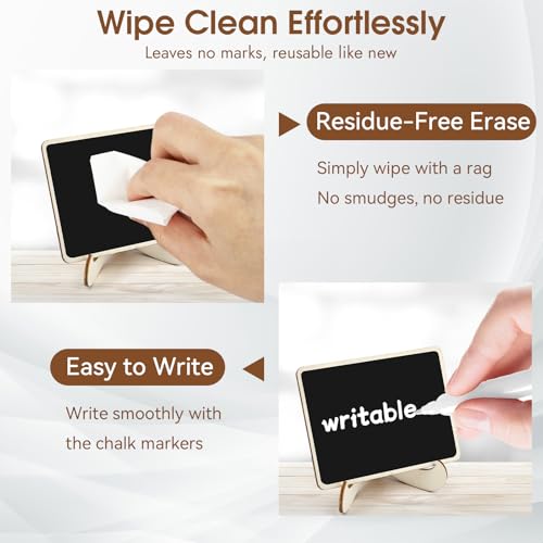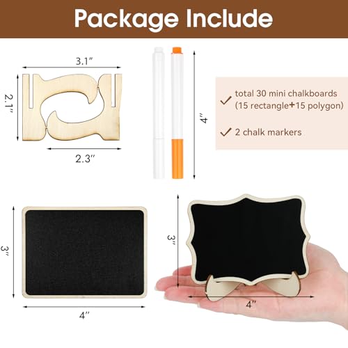 30 Pack Mini Chalkboard Signs, Food Labels for Party Buffet, Small Wooden Chalk Board Signs with Easel Stand & Markers, Reusable, Zero Residue Place Cards for Table Setting or Numbers, Outdoor Indoor