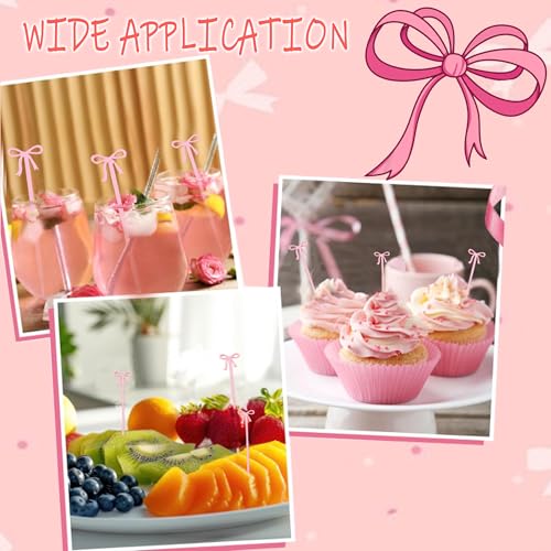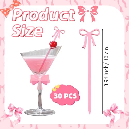 30 pcs Pink Bow Cocktail Picks, Cute Fruit Skewers for Party, Acrylic Bowknot Toothpicks for Appetizers Cake Drink Dessert Birthday Coquette Party Decorations