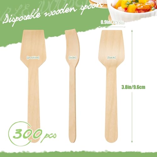 300 Pcs 3.75" Disposable Mini Wooden Tasting Spoons - Bulk Small Wood Spoons for Ice Cream Sampling, Honey, Desserts, Charcuterie Board & Tasting Events