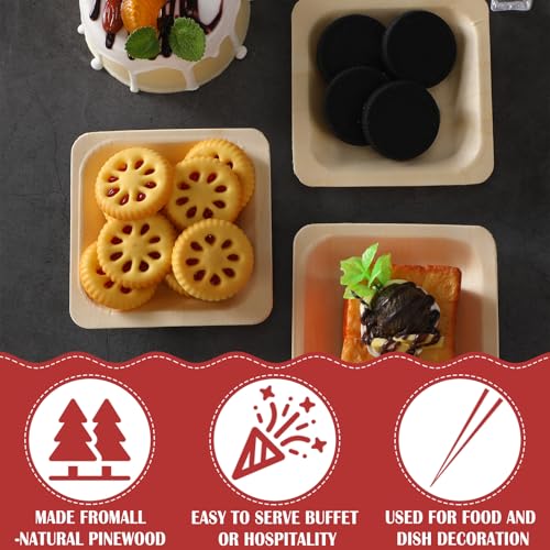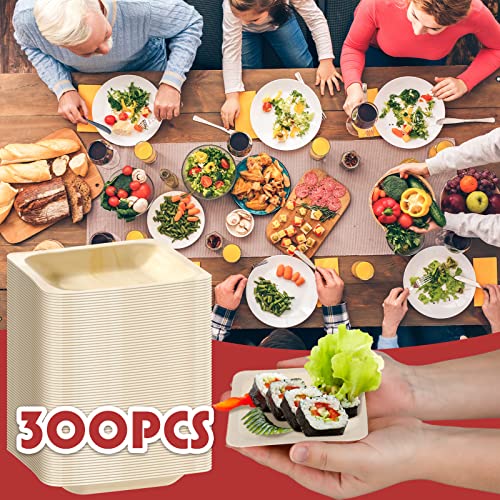 300 Pcs Disposable Square Palm Bowls Palm Leaf Bowls Bamboo Disposable Plates Square Wood Plates for Birthday Party, Wedding Events, Appetizer, Dessert, Catering and Home Use (3.94x3.94x0.6 Inch)
