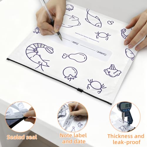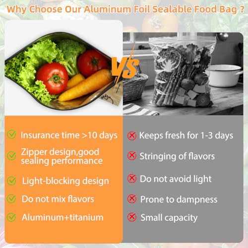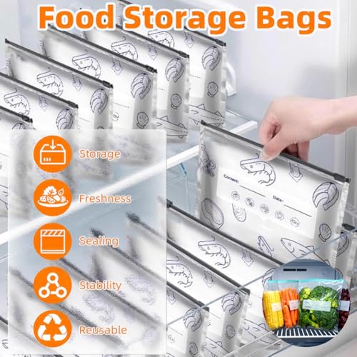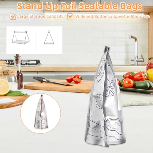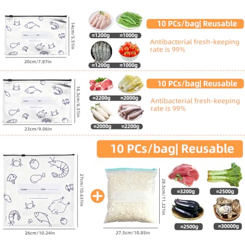 30PCS Reusable Aluminum Foil Sealable Storage Bags, 10PCS Reusable Ziploc Bags, Upgrade Resealable Vacuum Zipper Pouches for Food, Stand Up Foil Pouch with Label for Vegetable Fruit Meat