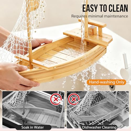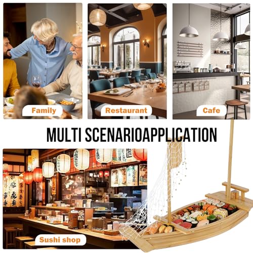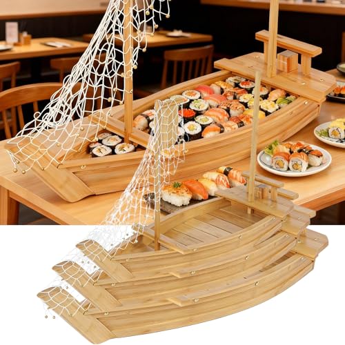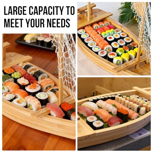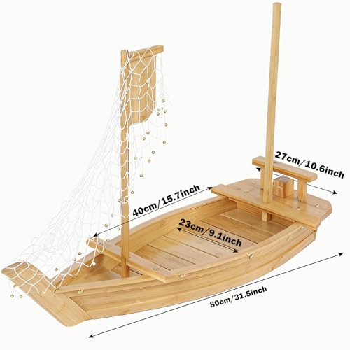 31.5 Inch Bamboo Sushi Boat Serving Tray – Extra Large Sushi Platter & Display Board, Japanese Wooden Boat Style for Sushi, Sashimi, Seafood Party, Sushi Serving Plate for Restaurant & Home