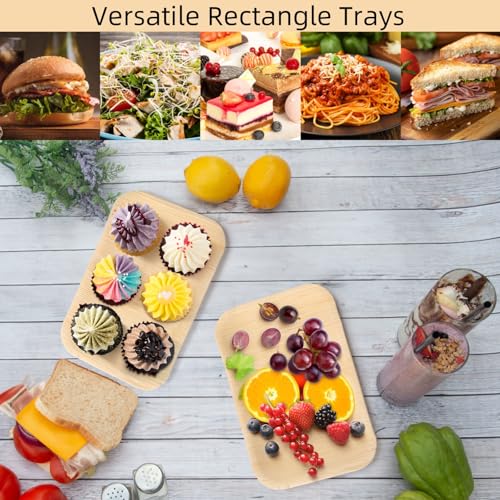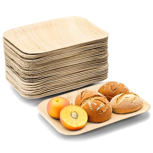 35 Pack Palm Leaf Plates Disposable, 6x9 Inch Bamboo Like Plate Rectangle Trays, Mini Charcuterie Board Appetizer Serving Plates for Cheese Dessert Party Wedding BBQ Picnic, Microwave Safe