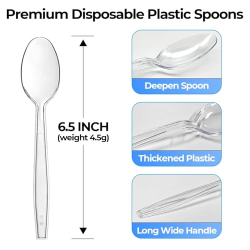 360 Count Extra Heavy Duty Plastic Spoons Bulk Disposable Spoons BPA-Free Heat Resistant Heavyweight Plastic Spoon for Party Restaurant