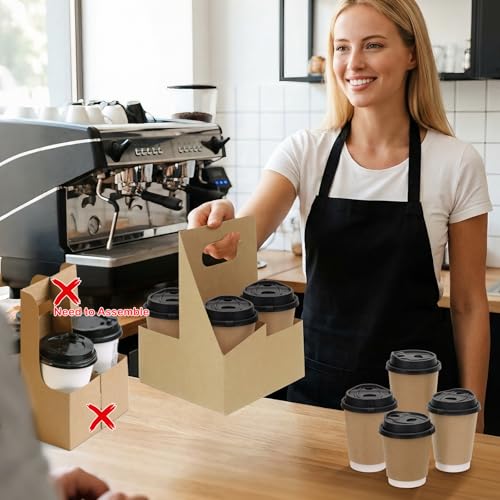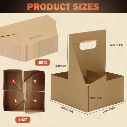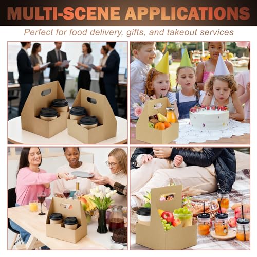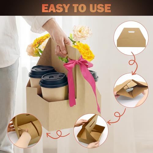 4 Cup Drink Coffee Carrier with Handle, 60 Pcs Paper Cup Holders Drink Holders Cardboard Disposable Beverage Tray Foldable Kraft to Go 12oz-32oz for Food Delivery Takeout Hot Cold Drinks