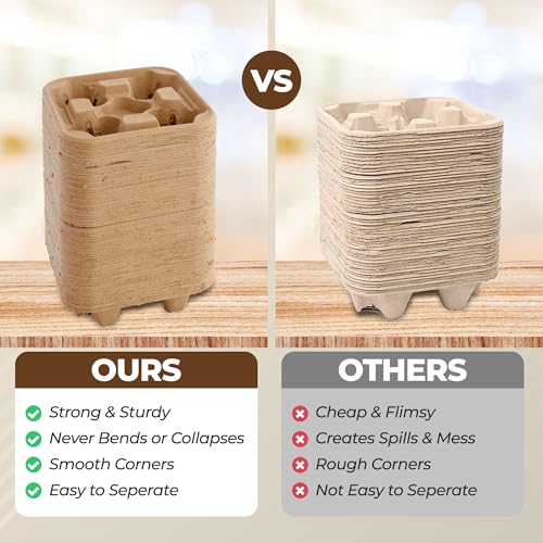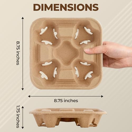 4 Cup Holders Drink Carrier 8-32 oz | 25 Cup Holder Tray Drink Carrier for Delivery Drinks Hot and Cold Beverages – To Go Disposable Compostable Pulp Fiber Restaurant Supplies, Coffee Shops, Uber Eats