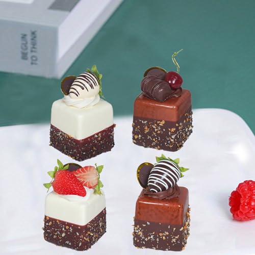 4 Pcs Realistic Artificial Cake Mixed Fake Model - Chocolate Fruit Cupcake for Photography Props, Home Kitchen Party Decorations