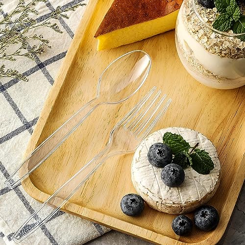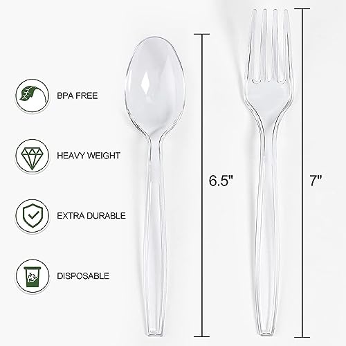 [400 Count] Clear Plastic Forks and Spoons Set Bulk - Heavy Duty Disposable Spoons and Forks Silverware, Plastic Utensils Cutlery Set for Party