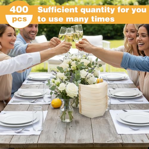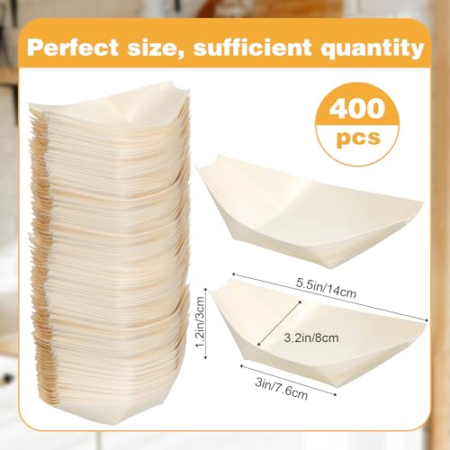 400 Pcs Bamboo Boat Plates 5.5" Disposable Wooden Appetizer Trays, Natural Birch Wood Charcuterie Boards, Sushi Serving Boat Leaf Dishes for Catering Hawaiian Wedding Party Home Supplies
