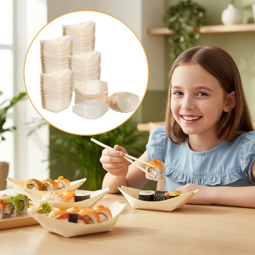 Brand Name: Leooomap | Color: Natural Wood | Finish Types: Textured | Included Components: wood and bamboo | Is the item dishwasher safe?: No | Is the item microwaveable?: No | Item Dimensions L x W x Thickness: 5.5"L x 1.2"W x 3"Th | Item Weight: 3.42 Pounds | Manufacturer: Leooomap | Manufacturer Part Number: 5377HDOS0813 | Material Features: Disposable | Material Type: Wood | Model Number: 5377SLZY7908 | Net Content Weight: 1 Pounds | Number of Pieces: 500 | Other Special Features of the Product: Disposable,Sturdy | Pattern: Animal Print | Product Care Instructions: Disposable - Do not wash or reuse. Throw away after use. | Recommended Uses For Product: Appetizer, Dessert, Fruit, Sushi, Birthday, Wedding, Baby Shower, Celebrations, Gatherings, Outdoor camping, Restaurants, Bars, Inns, Dinner | Shape: Boat | Size: 5.5 x 3 inch/ 14 x 7.6 cm | Style Name: Rustic | Unit Count: 400.0 Count