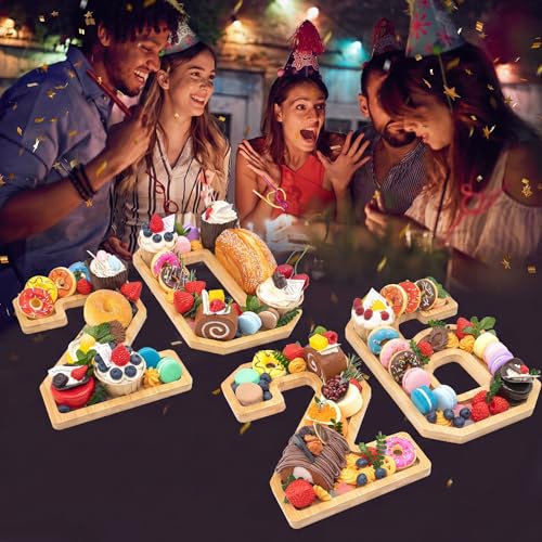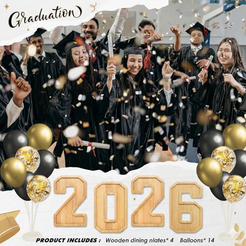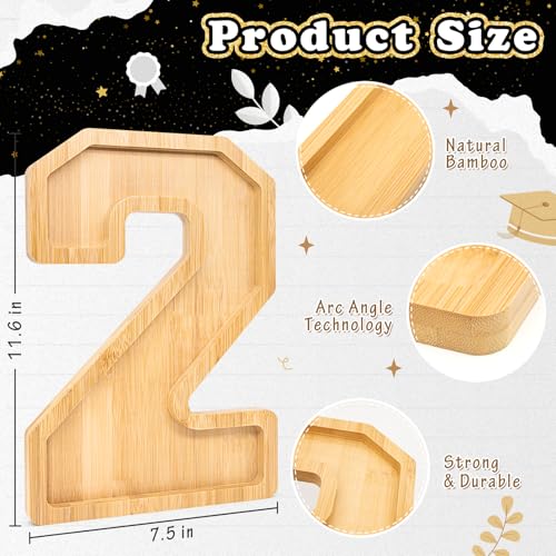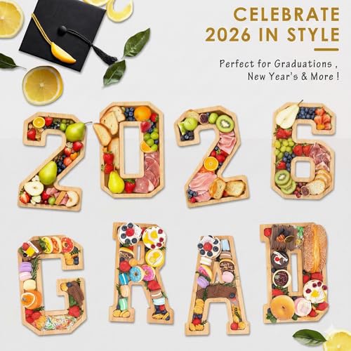 4PCS Wooden Graduation Decorations Number Charcuterie Board Box-(with 14 Balloons) 2026 Charcuterie Numbers Fillable Food Graduation Party Supplies