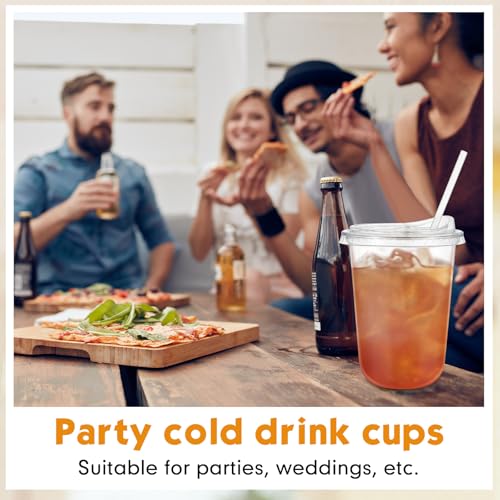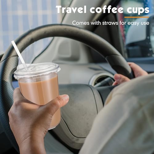 50 Pack 16 oz Clear Plastic Cups with Sip Lids & Straws, Disposable PET Crystal Iced Coffee Cups with Lids for Coffee Smoothie, Milkshake, Cold Drinks
