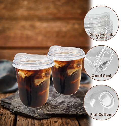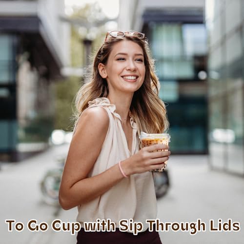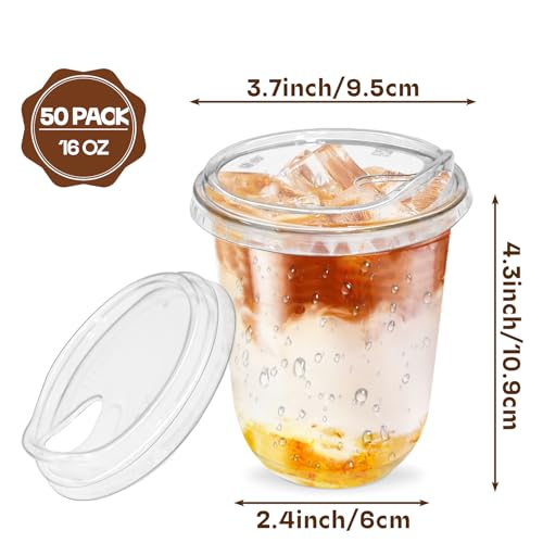 50 Pack Clear Plastic Cups with Strawless Sip Lids,16OZ Disposable Iced Coffee Cups,To Go Cup with Sip Through Lid for Smoothie,Bubble Tea,Cold Beverage,Wedding Party Drinks