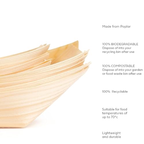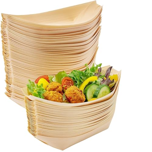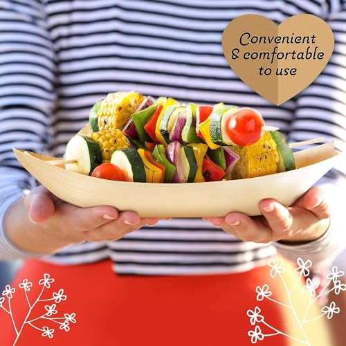 50 Pcs Bamboo Boat Plates 5.5" Disposable Wooden Boat Plates Bamboo Appetizer Boat Bamboo Leaf Small Boat Sushi Serving Tray Food Dishes Container Bowl for Catering and Home Party Use