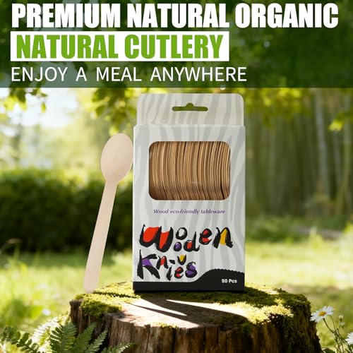 50 Pcs Disposable Wooden Spoons, 6.3 Inch Wooden Cutlery Spoon Disposable Spoons Wood Spoons, Eco-friendly Biodegradable Compostable Utensils for Party, Camping, Traveling, Family Dinners