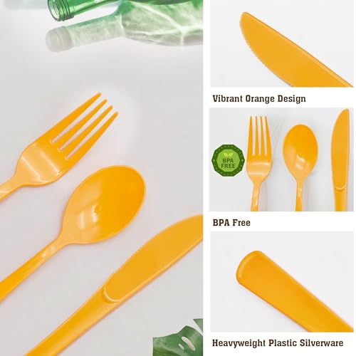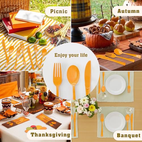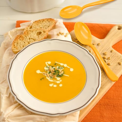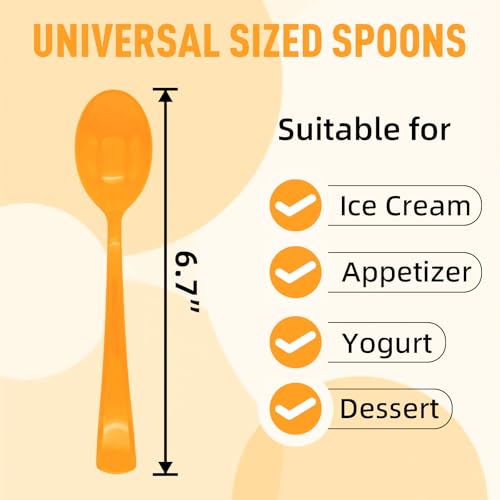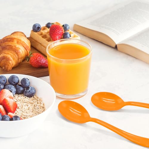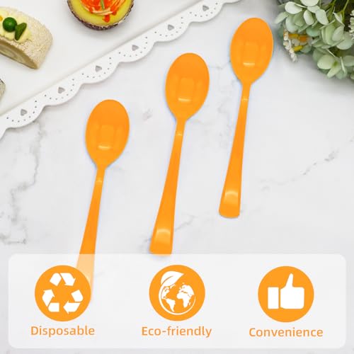 50 Pcs Orange Plastic Spoons Orange Plastic Silverware Disposable Cutlery Heavy Duty 50 Spoons for Birthday, Autumn, Halloween, Thanksgiving Day