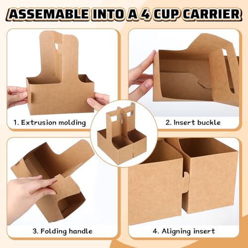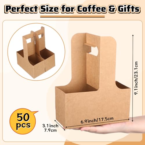50 Set Holiday 2 Cup Drink Carrier with Handle Red Green Disposable Cardboard Coffee Cup Holder Bulk Snowflake Portable Foldable Beverage Paper Tray for Valentine Day Delivery Party Supply