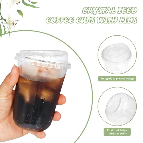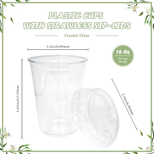 50 Sets Clear Plastic Coffee Cups with Sip Lids, Disposable PET Cups for Iced Coffee, Smoothie, Cold Beverage, Plastic Crystal for Shops and Party Catering (Clear, 16 oz)