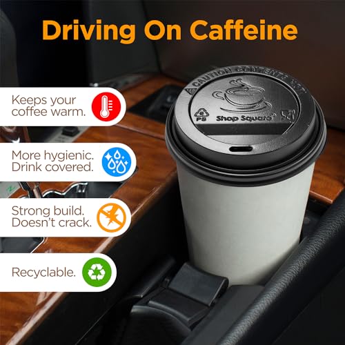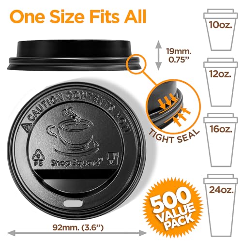 (500-Pack) Coffee Cup Lids - Disposable Coffee Lids for 10, 12, 16, 20, & 24 oz Paper Cups, 8 oz Squat Cups, Dome for To-Go Beverages, Expresso, Tea, Hot Chocolate - Black