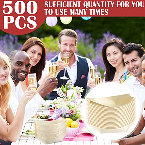 500 Pcs Bamboo Boat Plates for Appetizer 5.5" Disposable Wooden Charcuterie Boat Leaf Small Sushi Serving Tray Food Dishes Container Bowl for Catering Home Hawaiian Wedding Party Supplies