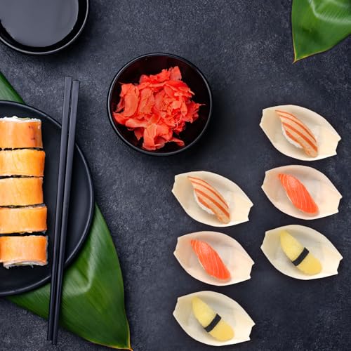 50pcs Disposable Wood Boat Plates Dishes: 3.3 Small Bamboo Boat Leaf Dish Serving Tray Food Dishes Container Bowl for Catering Home Holiday Party Supplies
