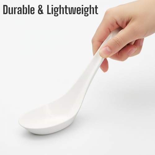 50pcs Eco-Friendly Disposable Asian Soup Spoons with Hook – Made from Plant-Based Cornstarch, Ideal for Ramen, Pho, Noodle Bowls, Takeout