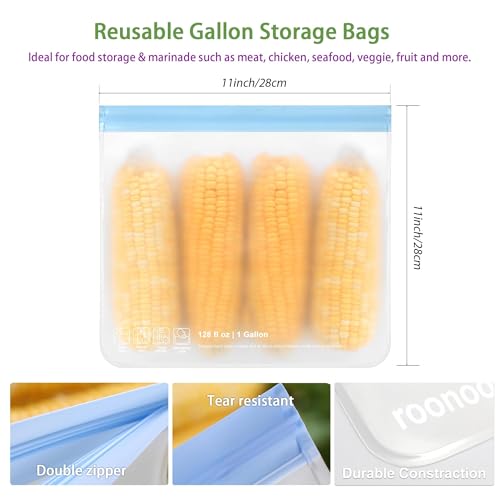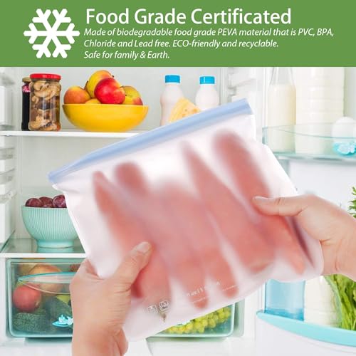 6 Pack Dishwasher Safe Reusable Gallon Freezer Bags Food Storage Bags, Extra Thick Leakproof Silicone & Plastic Free Ziplock Bags for Meal Prep, Fruits, Sandwich, Snack, Travel Items