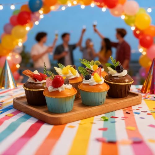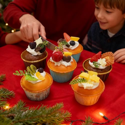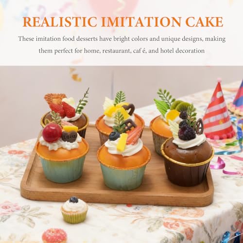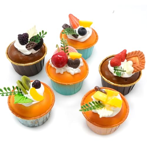 6 Pack Fake Cupcakes, Realistic Imitation Cake, Vibrantly Coloured Cupcakes, Ideal for Home Party Decorations, Photography Props, Stress-Relieving Gifts